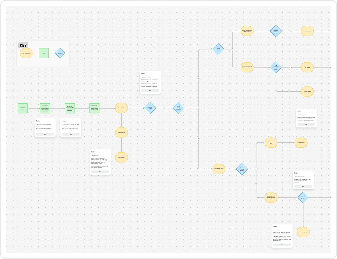 The development team built an initial POC for the prospective client, demonstrating the system’s ability to recognise distinct speakers within transcripts. With early confidence established, I led the transition into the design phase.