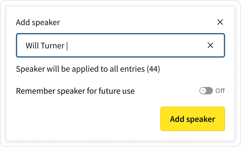While we explored more granular control, testing showed these options added unnecessary cognitive load. 4 out of 5 participants described applying a speaker to a single entry as a corrective action, rather than a bulk one.