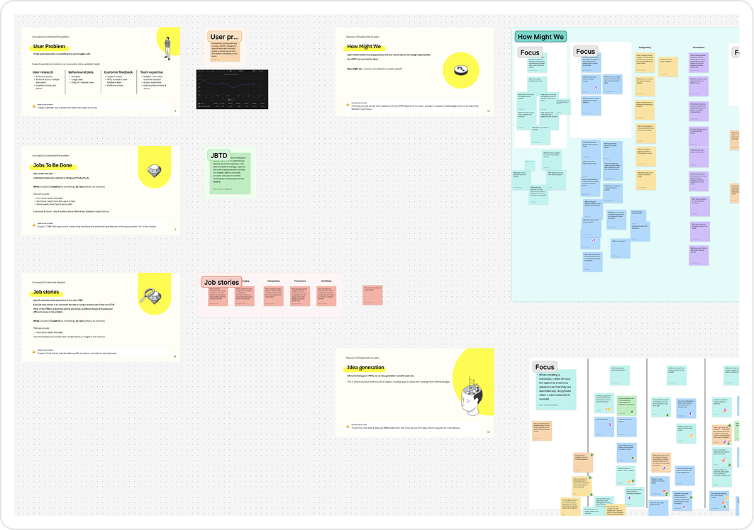 Before joining this team, discovery had been largely developer-led, with little structure around user needs. I ran a discovery workshop to help the team shift focus from shipping features to understanding real user problems.
