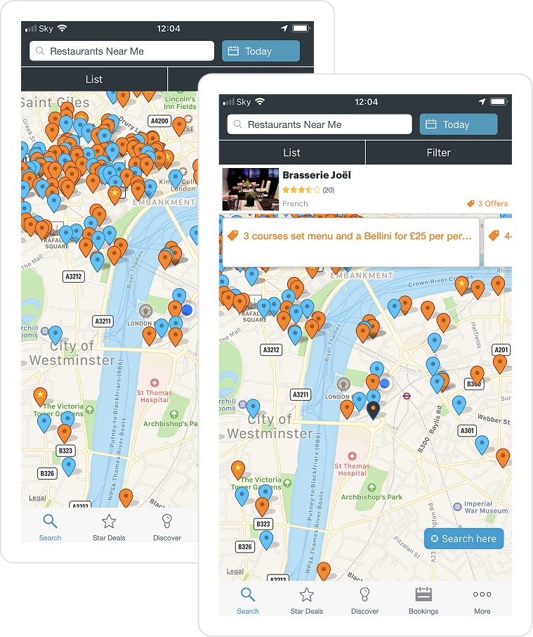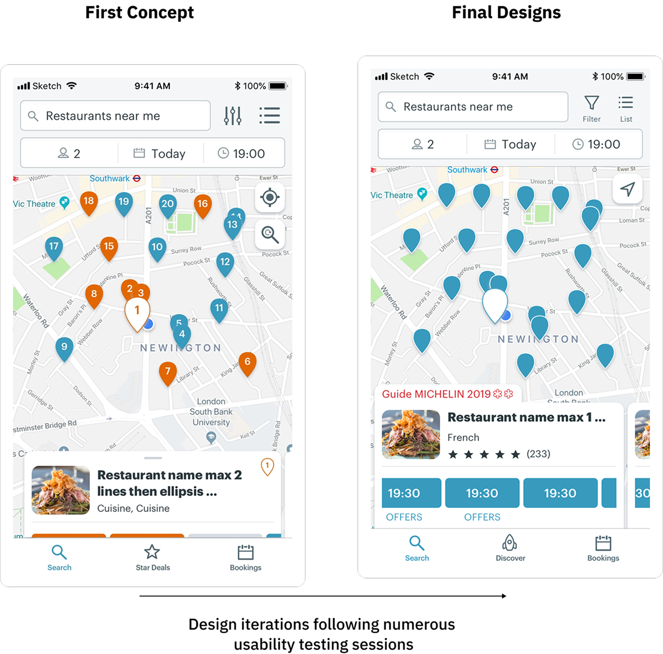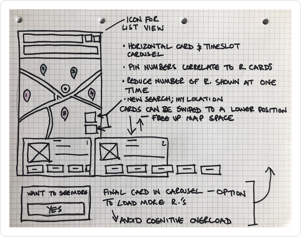 Research showed that around 30% of users prioritised location when choosing a restaurant. Despite this, the existing map view was cluttered and difficult to scan.