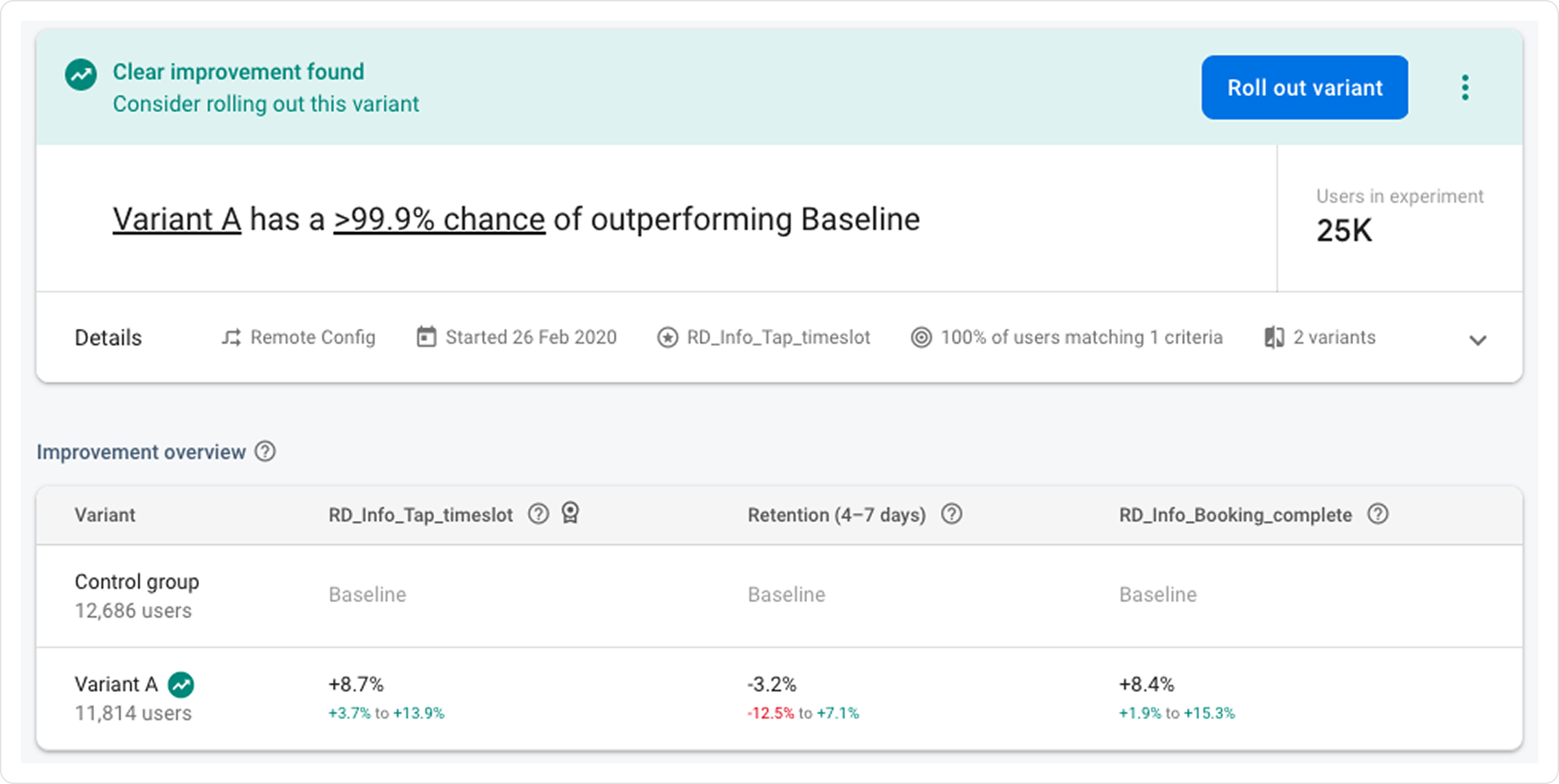 The A/B test resulted in an 8.4% increase in booking conversion and an 8.7% increase in interaction rate.
