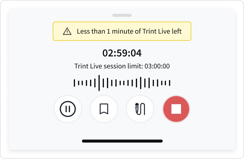 The existing Live experience relied on a hard stop when users reached their transcription limit. While this approach was technically simple, it created a jarring interruption in time-critical scenarios where users were actively recording live conversations.